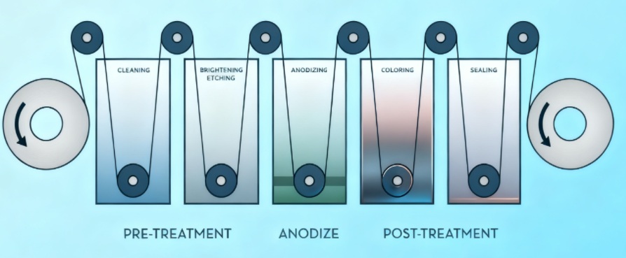 From pre-treatment to anodizing to post-treatment, each phase of the Coil Anodizing Process protects the aluminum and offers a vast range of vibrant colors, hues and finishes that provide an esthetically pleasings and durable finish.